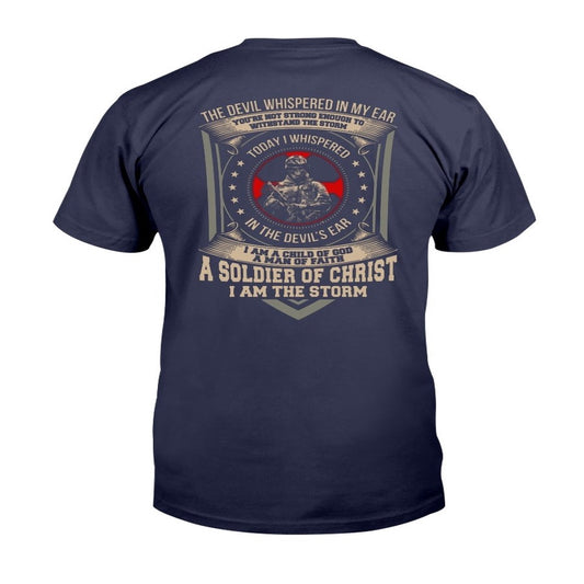 Veteran Tee Shirts, The Devil Whispered In My Ear A Soldier Of Christ I Am The Storm T-Shirt, Veterans Day Shirts