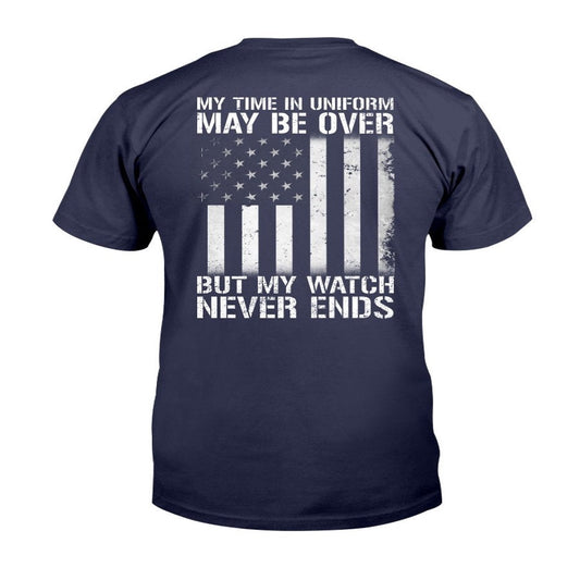Veteran Tee Shirts, My Time In Uniform May Be Over But My Watch Never Ends T-Shirt, Veterans Day Shirts