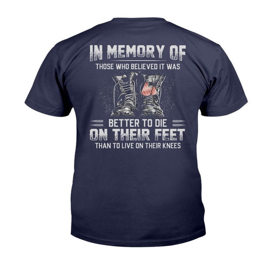 Veteran Tee Shirts, In Memory Of Those Who Believed It Was Better To Die On Their Feet T-Shirt, Veterans Day Shirts