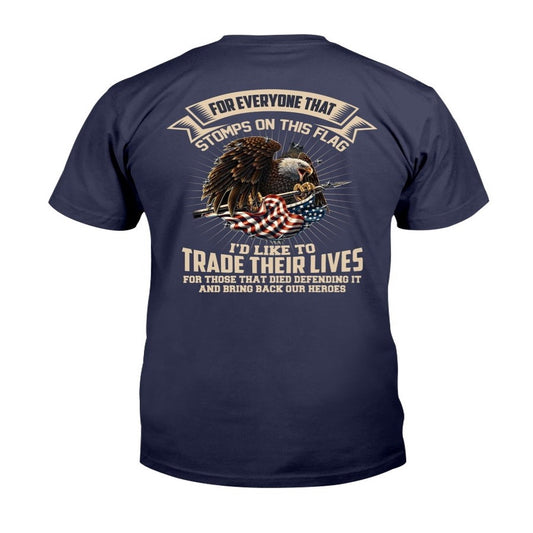 Veteran Tee Shirts, For Everyone That Stomps On This Flag I'd Like To Trade Their Lives T-Shirt, Veterans Day Shirts