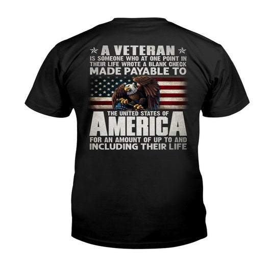 Veteran Tee Shirts, A Veteran Is Someone Who At One Point In Their Life Wrote A Blank US Eagle Veteran T-Shirt, Veterans Day Shirts
