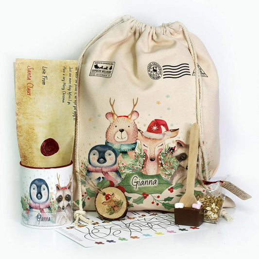 Personalised Christmas Sack, Christmas Gift Sack Christmas Animals, Christmas Bag