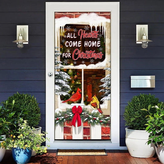 Christmas Door Cover, All Hearts Come Home For Christmas Cardinal Door Cover, Cardinal Christmas Decor, Xmas Door Covers