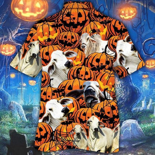 Happy Halloween Brahman Pumpkin All Over Printed Hawaiian Shirt, Farm Hawaiian Shirt, Farmer Hawaii