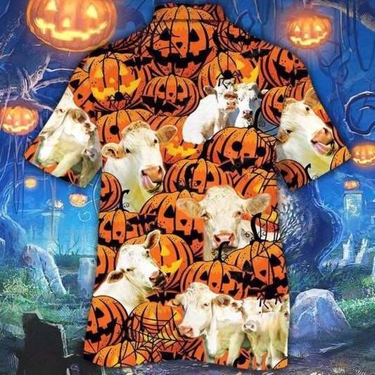 Happy Halloween Charolais Pumpkin All Over Printed Hawaiian Shirt, Farm Hawaiian Shirt, Farmer Hawaii