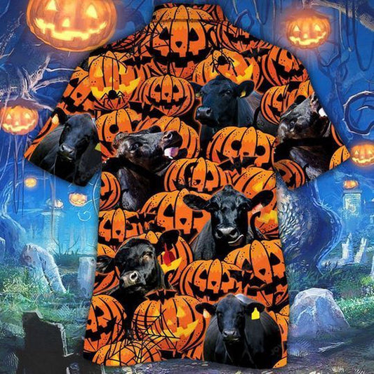 Happy Halloween Black Angus Pumpkin All Over Printed Hawaiian Shirt, Farm Hawaiian Shirt, Farmer Hawaii