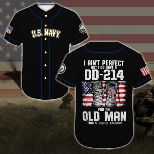 Veteran Baseball Jersey, Baseball Shirt United States Navy Veteran DH39 All Over Printed