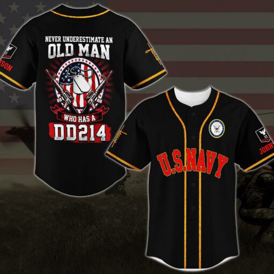 Veteran Baseball Jersey, US Navy Never Underestimate An Old Man Who Has A DD214 Baseball Shirt, Custom Baseball Shirt