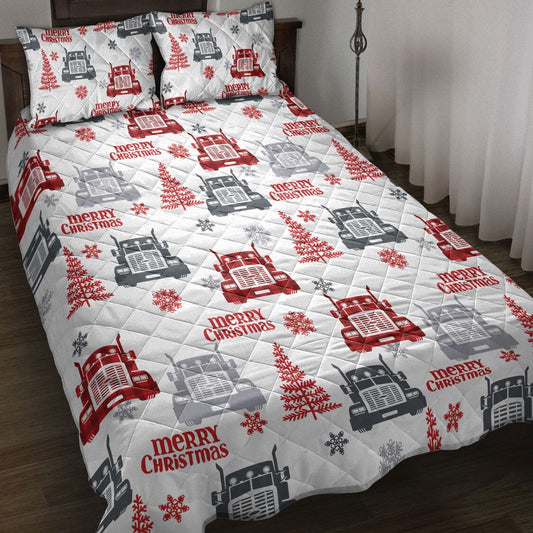Red Truckmas Tree Snowflakes Love Trucker Truck Driver Bedding Set, Christmas Beddings, Xmas Bedding Sets