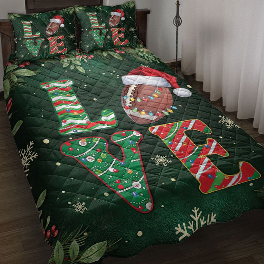 Love Football Withmas Hat Holly Berry Snowflake Xmas Holiday Bedding Set, Christmas Beddings, Xmas Bedding Sets