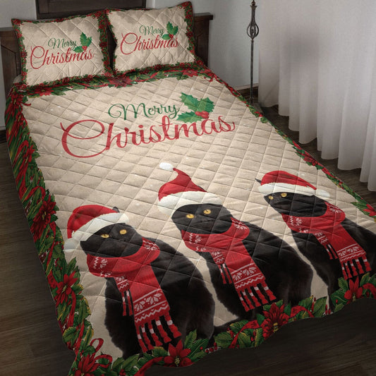 Merrymas Black Cat With Santa Hat Cat Bedding Set, Christmas Beddings, Xmas Bedding Sets