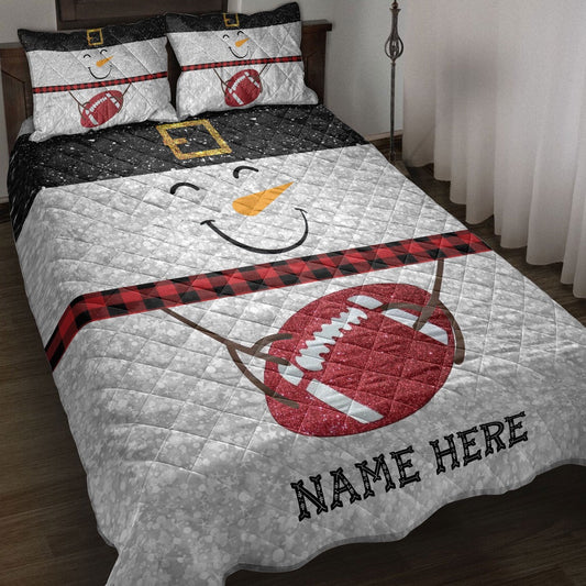 Funny Snowman Bringmas Football Glitter Buffalo Plaid Bedding Set, Christmas Beddings, Xmas Bedding Sets