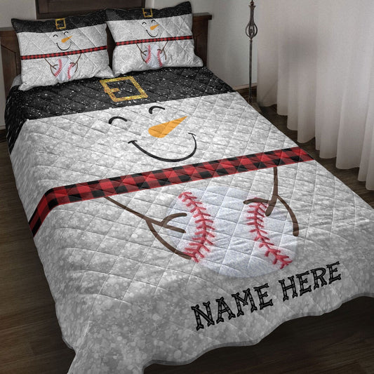 Funny Snowman Bringmas Baseball Glitter Buffalo Plaid Bedding Set, Christmas Beddings, Xmas Bedding Sets