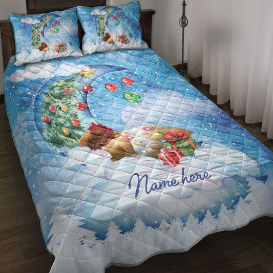 Boxer Sleeping On The Moon Snowflakemas Tree Dog Bedding Set, Christmas Beddings, Xmas Bedding Sets