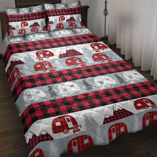 Christmas Camping Camper Red Buffalo Plaid Winter Holiday Bedding Set, Christmas Beddings, Xmas Bedding Sets
