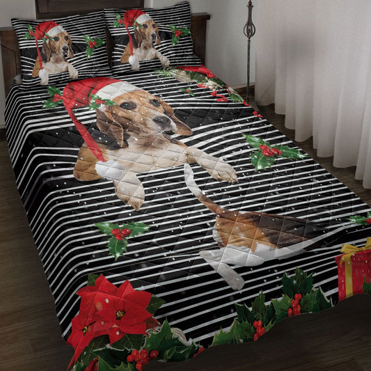 Beaglemas Striped With Santa Hat And Holy Berry Snowflake Bedding Set, Christmas Beddings, Xmas Bedding Sets