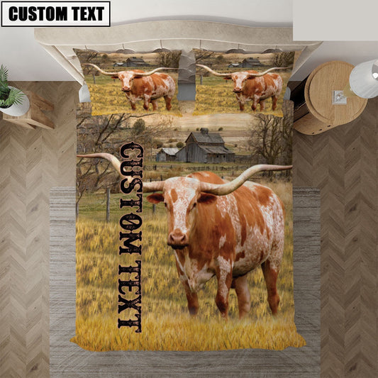 Personalized Name TX Longhorn Cattle On The Farm Bedding Set, Farm Bedding Set, Farmhouse Bedding Set
