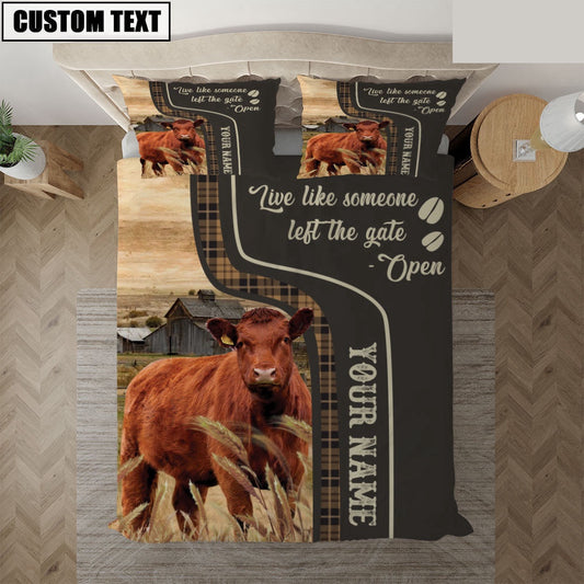Red Angus Like Someone Left The Gate Open Customized Name Bedding Set, Farm Bedding Set, Farmhouse Bedding Set