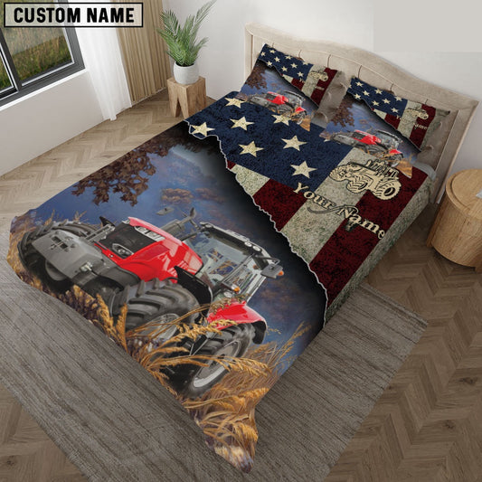 Red Tractor America Customized Name Bedding Set, Farm Bedding Set, Farmhouse Bedding Set