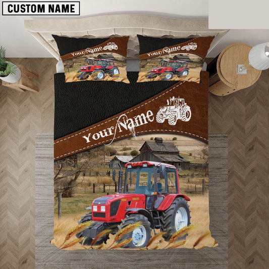 Red Tractor On The Field Customized Name Bedding Set, Farm Bedding Set, Farmhouse Bedding Set