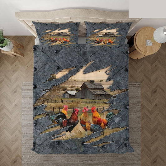 Rooster On The Farm Customized Name Bedding Set, Farm Bedding Set, Farmhouse Bedding Set