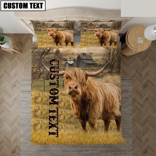 Personalized Name Highland Cattle On The Farm Bedding Set, Farm Bedding Set, Farmhouse Bedding Set