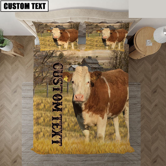 Personalized Name Simmental Cattle On The Farm Bedding Set, Farm Bedding Set, Farmhouse Bedding Set