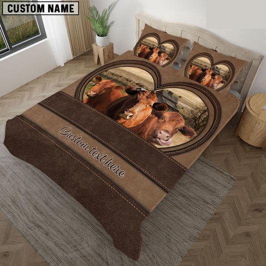 Red Angus In Heart Custom Name Bedding Set, Farm Bedding Set, Farmhouse Bedding Set