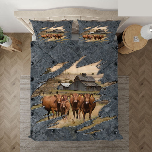 Red Angus Cattle Customized Bedding Set, Farm Bedding Set, Farmhouse Bedding Set