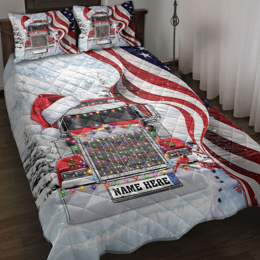 Red Truckermas String Light Us Flag Bedding Set, Christmas Beddings, Xmas Bedding Sets