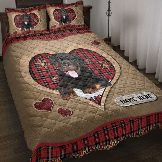Rottweilermas Heart Red Plaid Bedding Set, Christmas Beddings, Xmas Bedding Sets
