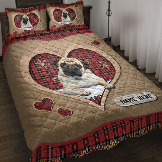 Pugmas Heart Red Plaid Bedding Set, Christmas Beddings, Xmas Bedding Sets