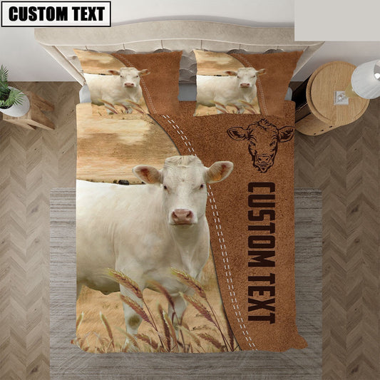 Custom Name Charolais No Horn On Farm Bedding Set, Farm Bedding Set, Farmhouse Bedding Set
