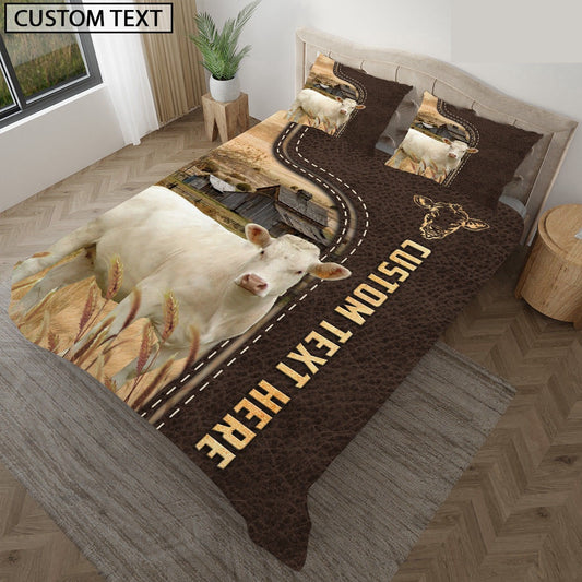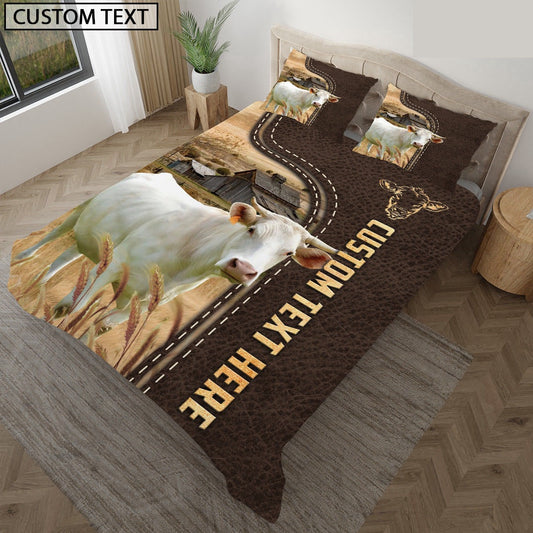 Charolais No Horn Custom Text Leather Pattern Bedding Set, Farm Bedding Set, Farmhouse Bedding Set