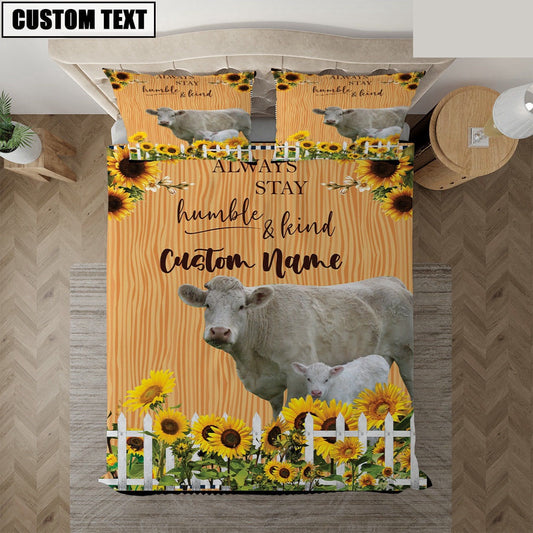 Charolais Stay Humble And Kind Custom Name Bedding Set, Farm Bedding Set, Farmhouse Bedding Set