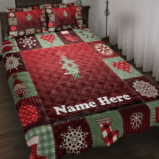 Merrymas Patchwork Red Plaid Bedding Set, Christmas Beddings, Xmas Bedding Sets