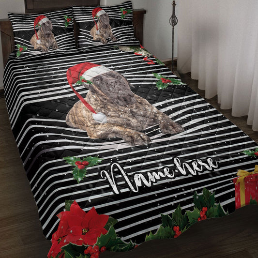 Brindle English Mastiffmas Striped Bedding Set, Christmas Beddings, Xmas Bedding Sets