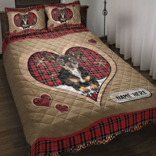 Chihuahuamas Heart Red Plaid Bedding Set, Christmas Beddings, Xmas Bedding Sets