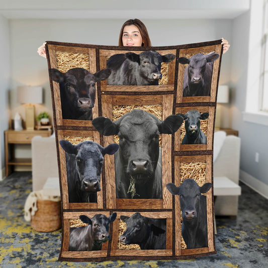 Black Angus In Farm All Printed 3D Blanket, Farm Blanket, Farm Animal Blanket