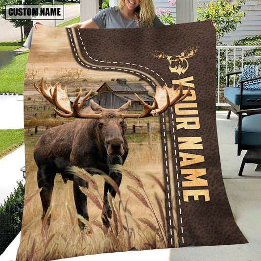 Personalized Name Moose Leather Pattern Blanket, Farm Blanket, Farm Animal Blanket