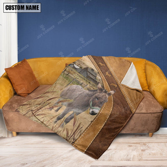 Personalized Name Miniature Donkey Brownie Background Blanket, Farm Blanket, Farm Animal Blanket