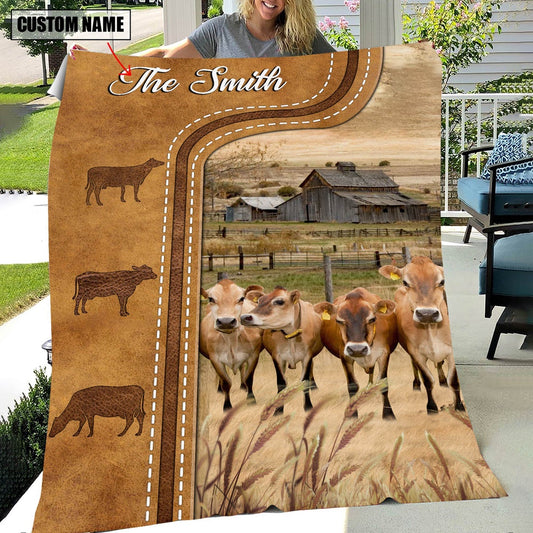 Personalized Jersey Cattle In Field Farmhouse Blanket, Farm Blanket, Farm Animal Blanket
