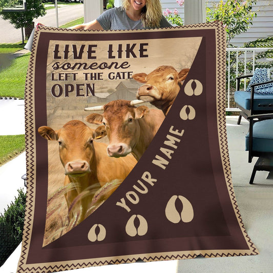 Personalized Limousin Live Like Someone Left The Gate Open Blanket, Farm Blanket, Farm Animal Blanket