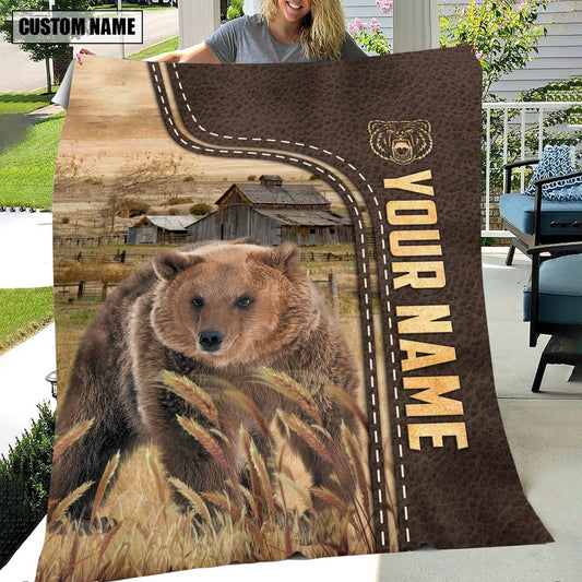 Personalized Name Bear Leather Pattern Blanket, Farm Blanket, Farm Animal Blanket