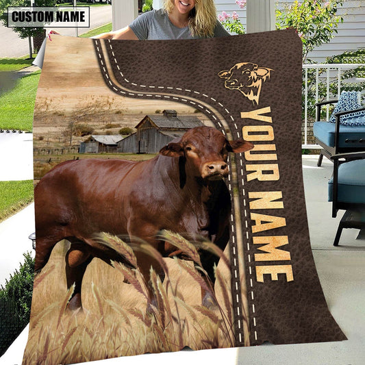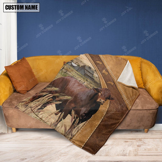 Personalized Name Beefmaster Brownie Background Blanket, Farm Blanket, Farm Animal Blanket