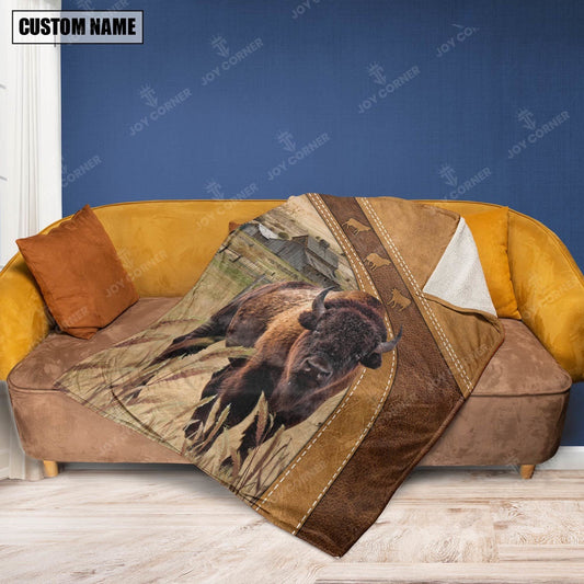 Personalized Name Bison Brownie Background Blanket, Farm Blanket, Farm Animal Blanket