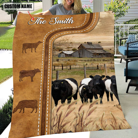 Personalized Name Belted Galloway Leather Pattern Blanket, Farm Blanket, Farm Animal Blanket