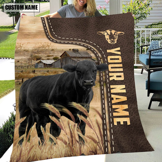Personalized Name Black Angus Leather Pattern Blanket, Farm Blanket, Farm Animal Blanket