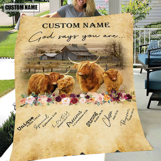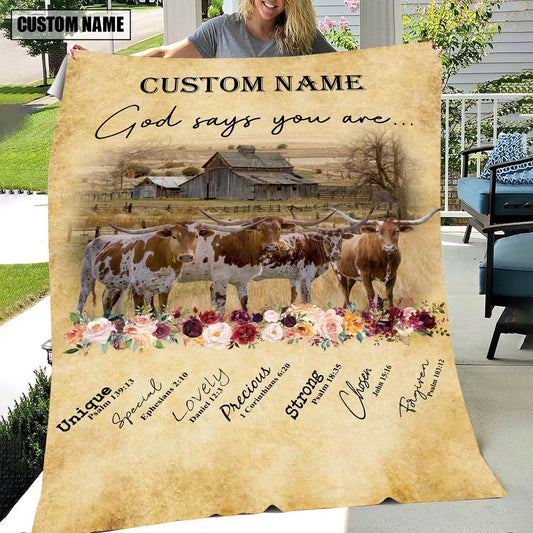 God Says You Are Personalized Name Texas Longhorn Blanket, Farm Blanket, Farm Animal Blanket