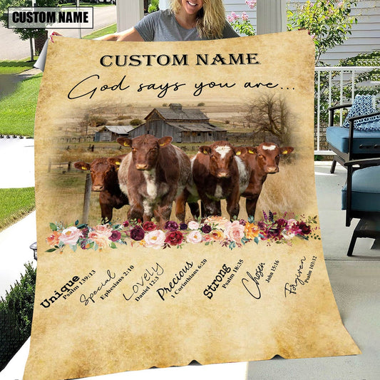 God Says You Are Personalized Name Shorthorn Blanket, Farm Blanket, Farm Animal Blanket